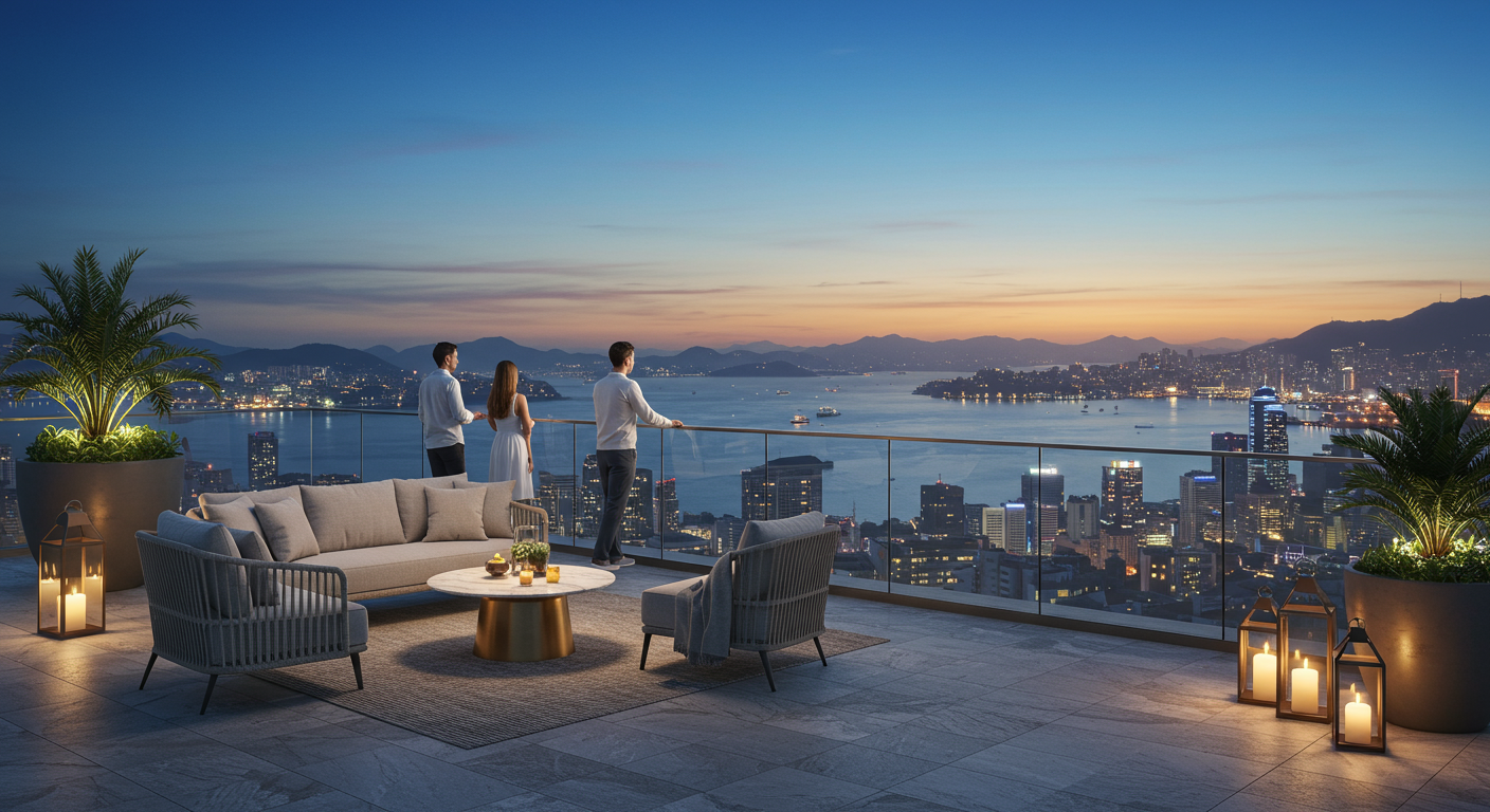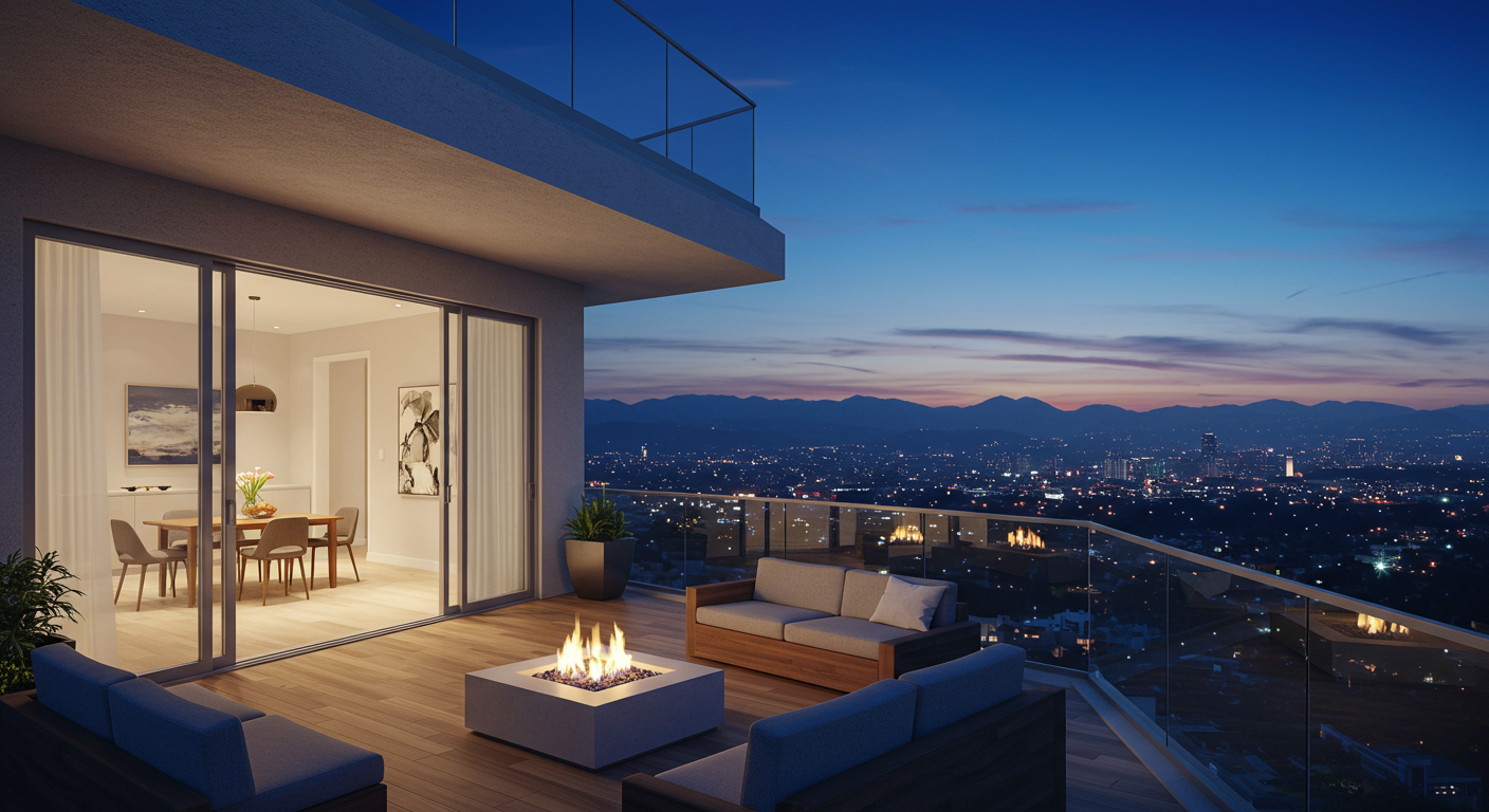 Landmark on Robson showcases terraces that surround the entirety of the building. These terraces feature floor to ceiling glass, integrated operable windows with ambient lighting, and wood-like finishes that create an indoor to outdoor flow.
