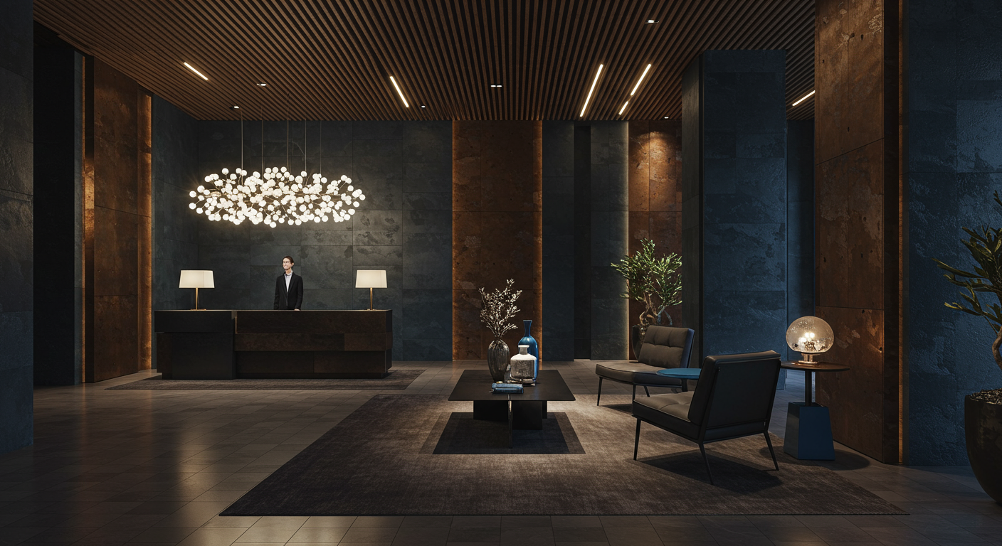 Each Landmark suite displays elaborate custom wood surround, integrated cove lighting, custom closets with detailed fixtures, and extreme attention to detail. Bathrooms come in various custom tones including a light fluorescent grey, and a dark opulent grey. Landmark kitchens by Minotti Cucine feature an artistic design based on minimalism and essentialism.